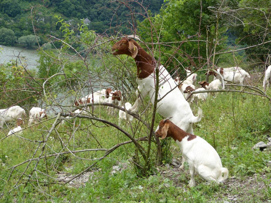 Im Rheingau sind ehemalige Weinbergsflächen in steilen, schwierig zu bewirtschaftenden Lagen verbuscht. Der Landschaftspflegeverband managt die selektive Entbuschung und Beweidung mit Ziegen. Erhalten werden die im Oberen Mittelrheintal vorkommenden Zielarten wie der Französische Ahorn. Die kulturhistorisch bedeutsamen Trockenmauern werden freigestellt. Mauereidechse und Haarstrangwurzeleule sind Arten mit europäischem Schutzstatus, die davon profitieren.